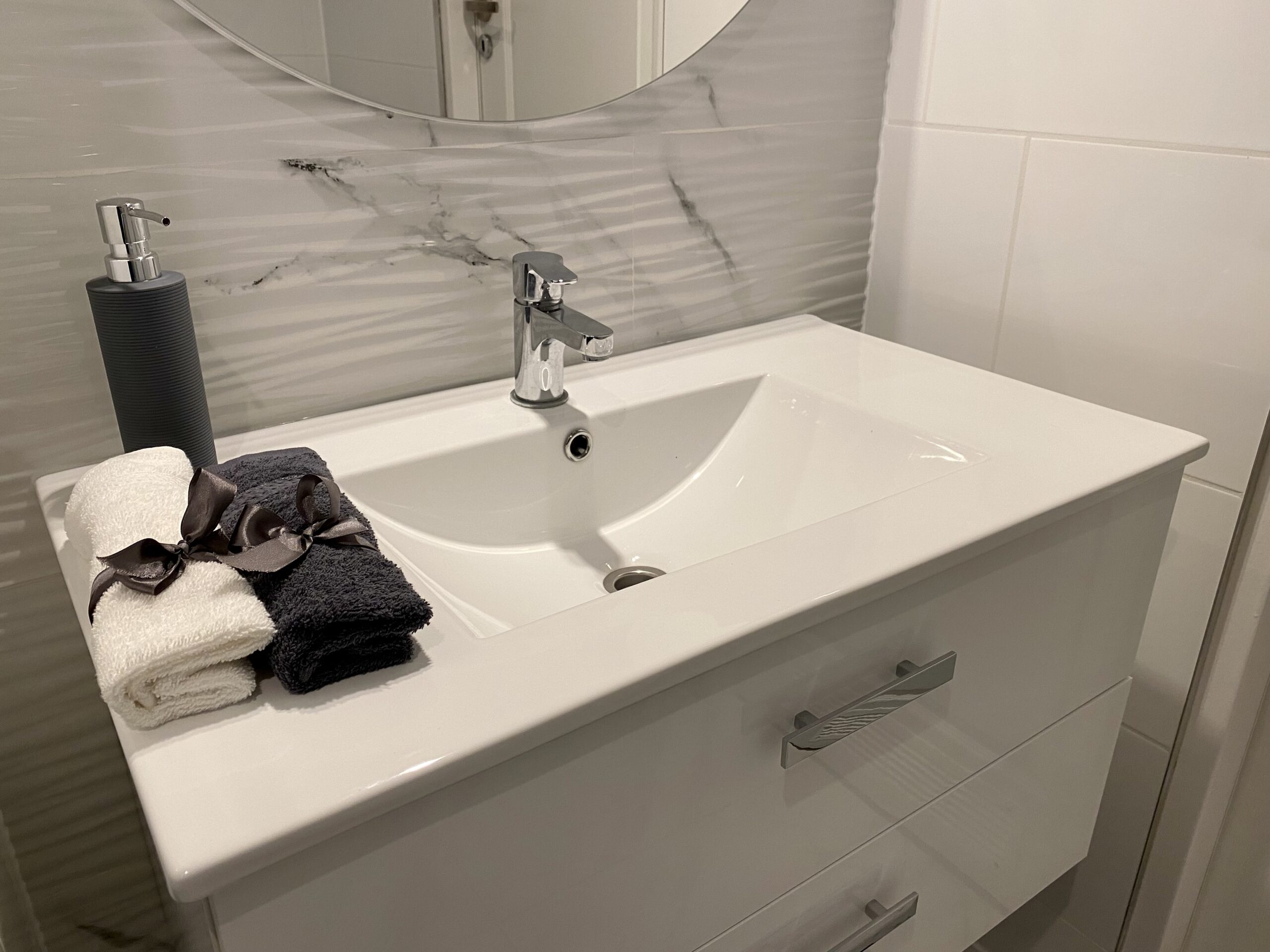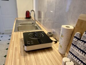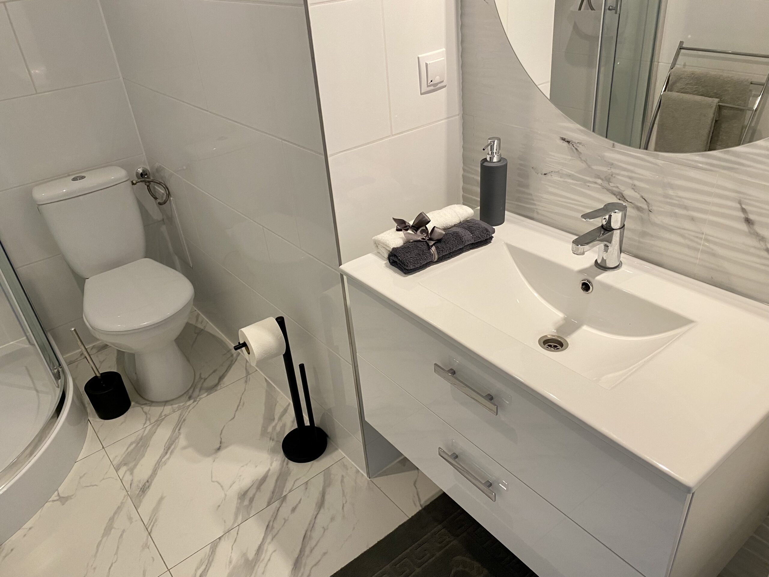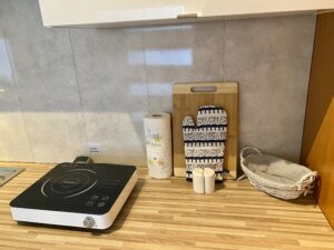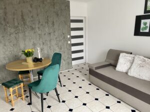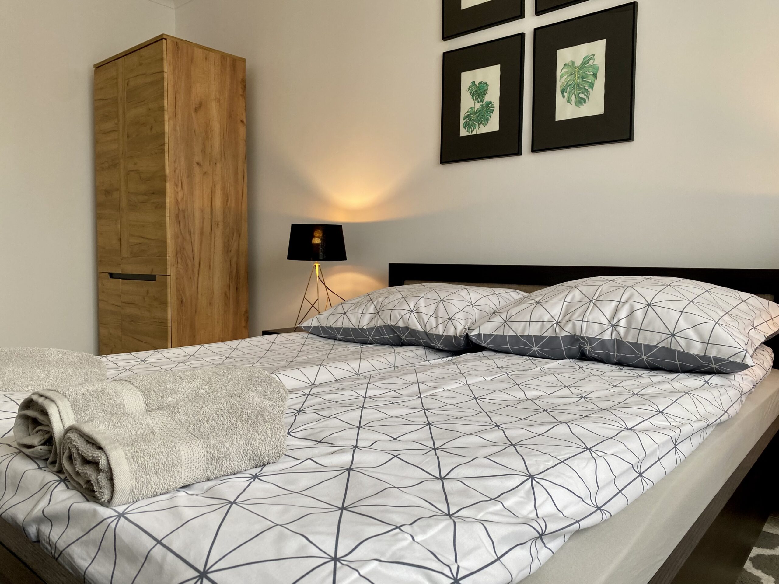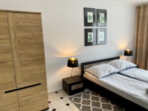 W apartamencie do dyspozycji Gości przygotowano sypialnię, kuchnię ze standardowym wyposażeniem, takim jak lodówka i piekarnik, a także łazienkę z prysznicem. Wyposażenie obejmuje także pralkę oraz telewizor z płaskim ekranem. W apartamencie zapewniono ręczniki i pościel.
